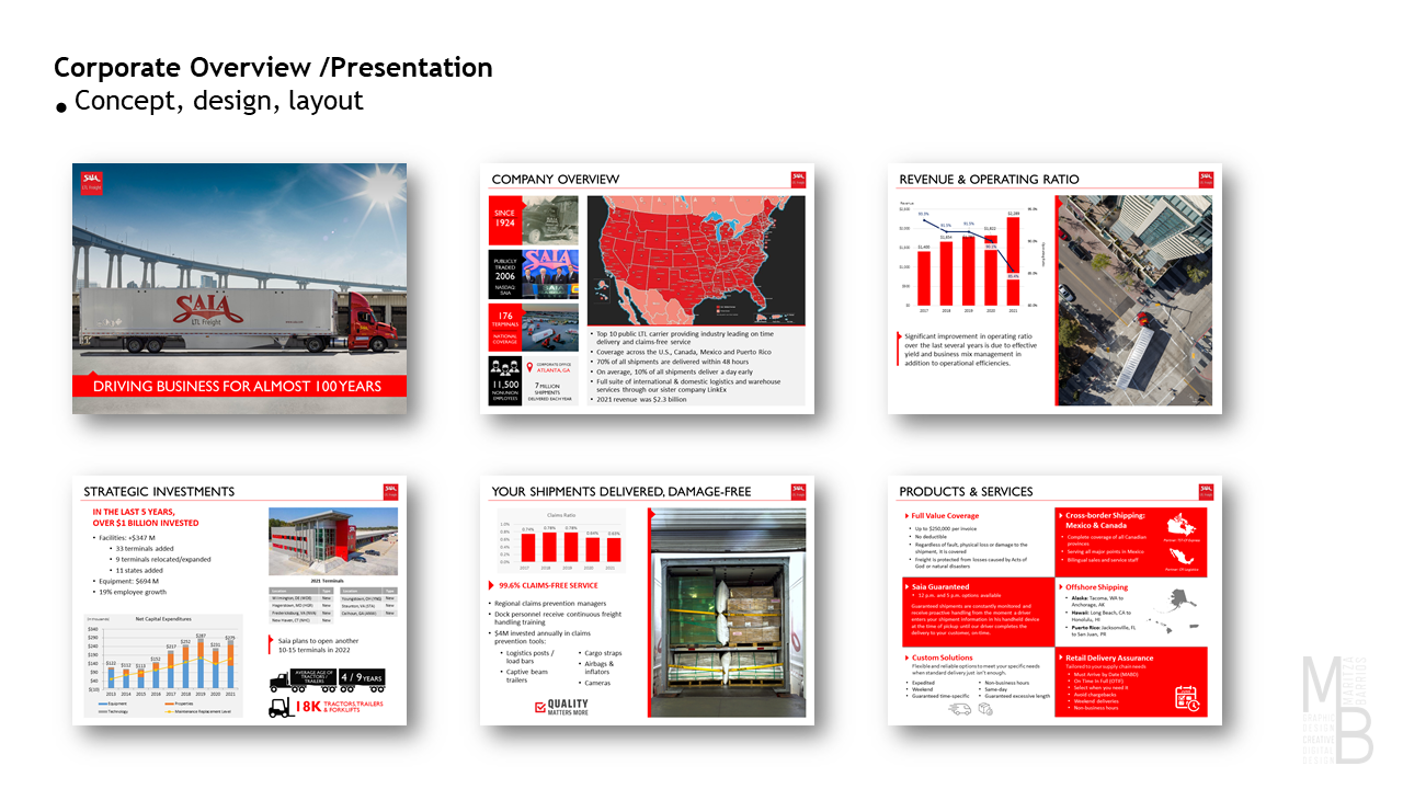 Create marketing material for internal and external communications. Maintain, create / update company branding standards, corporate presentations, photo editing and graphics.